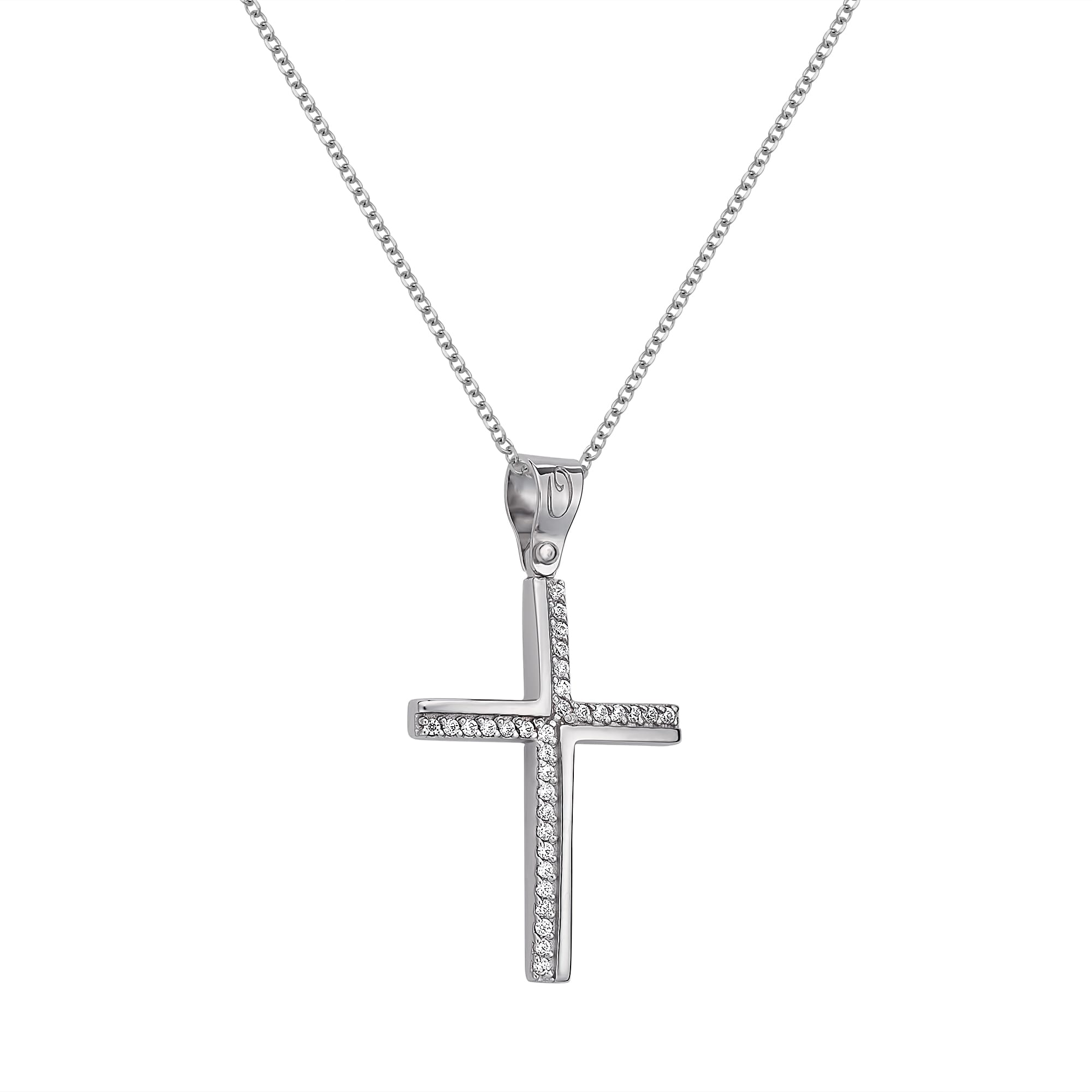 Λεπτός Σταυρός Λευκόχρυσος Και Ζιργκόν 14Κ